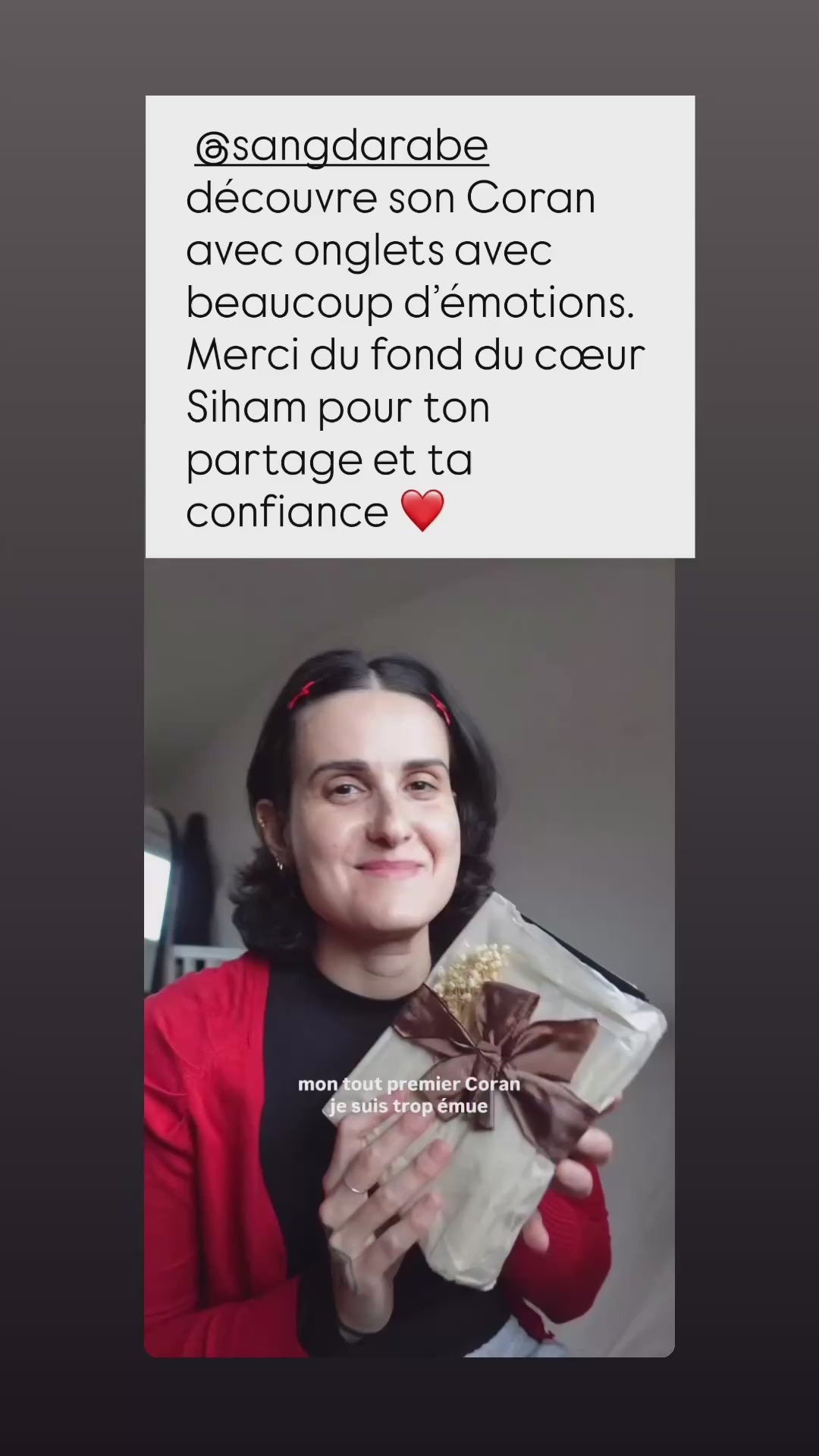 “J’ai offert ce Coran à ma sœur. Elle avait le même problème que moi : de bonnes intentions mais aucun passage à l’action. Depuis elle lit tous les matins. J’en ai offert 3 autour de moi. On a même créé un groupe WhatsApp. Ça nous a toutes transformées.”